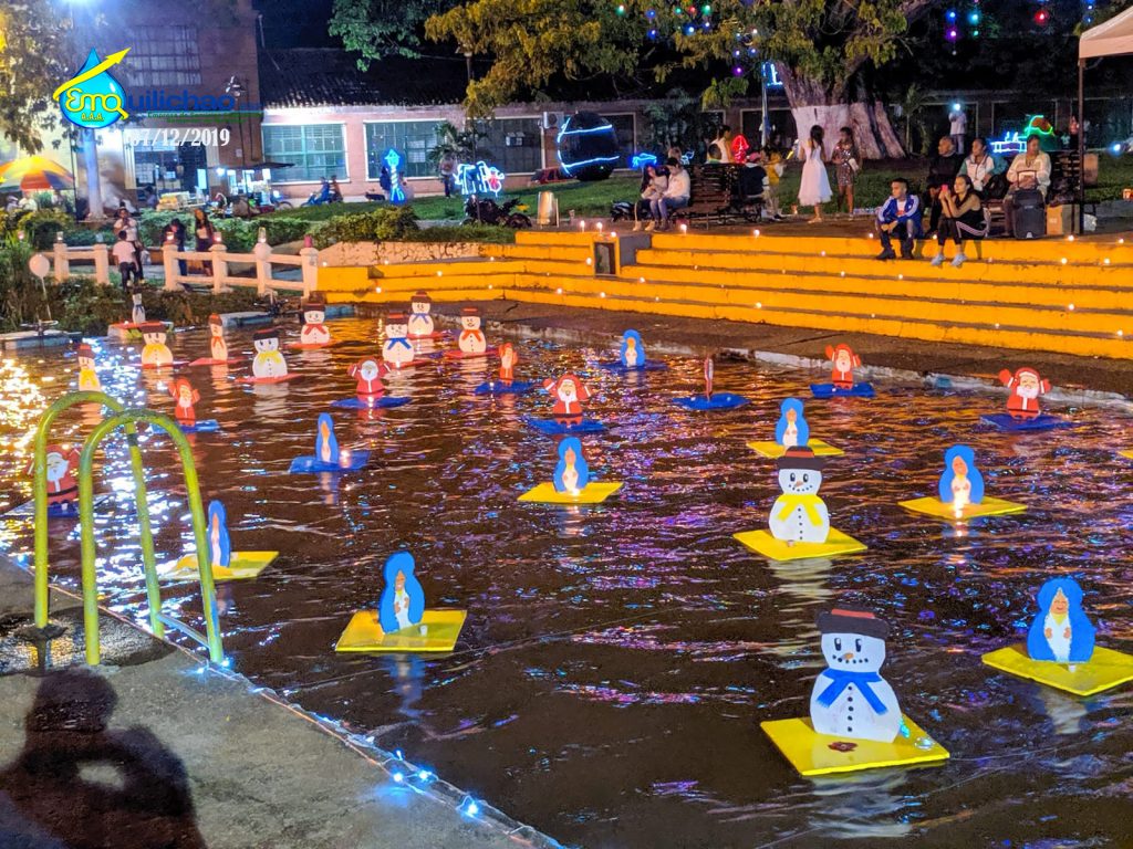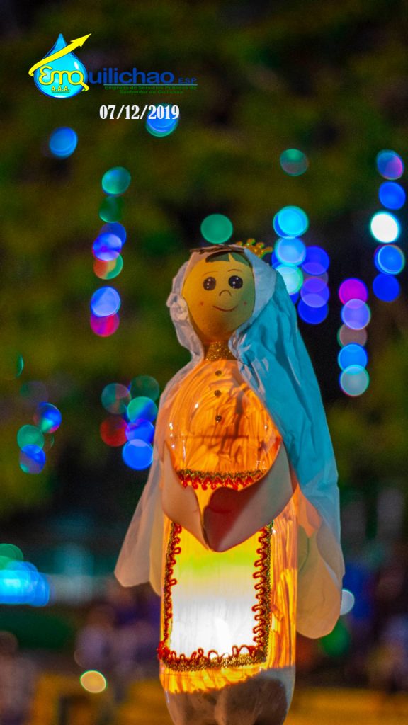 El programa de Uso Eficiente y Ahorro del Agua de la empresa de servicios públicos Emquilichao E.S.P, con el apoyo de los estudiantes de servicio social engalanaron el parque Bolívar y alrededor de la piscina municipal con faroles y figuras navideñas realizadas en materiales reciclados recuperados durante todo el año, esta hermosa noche de velitas llena de magia y alegría contagio a todos los Quilichagueños que también elevaron sus oraciones pidiendo por la paz de Colombia.