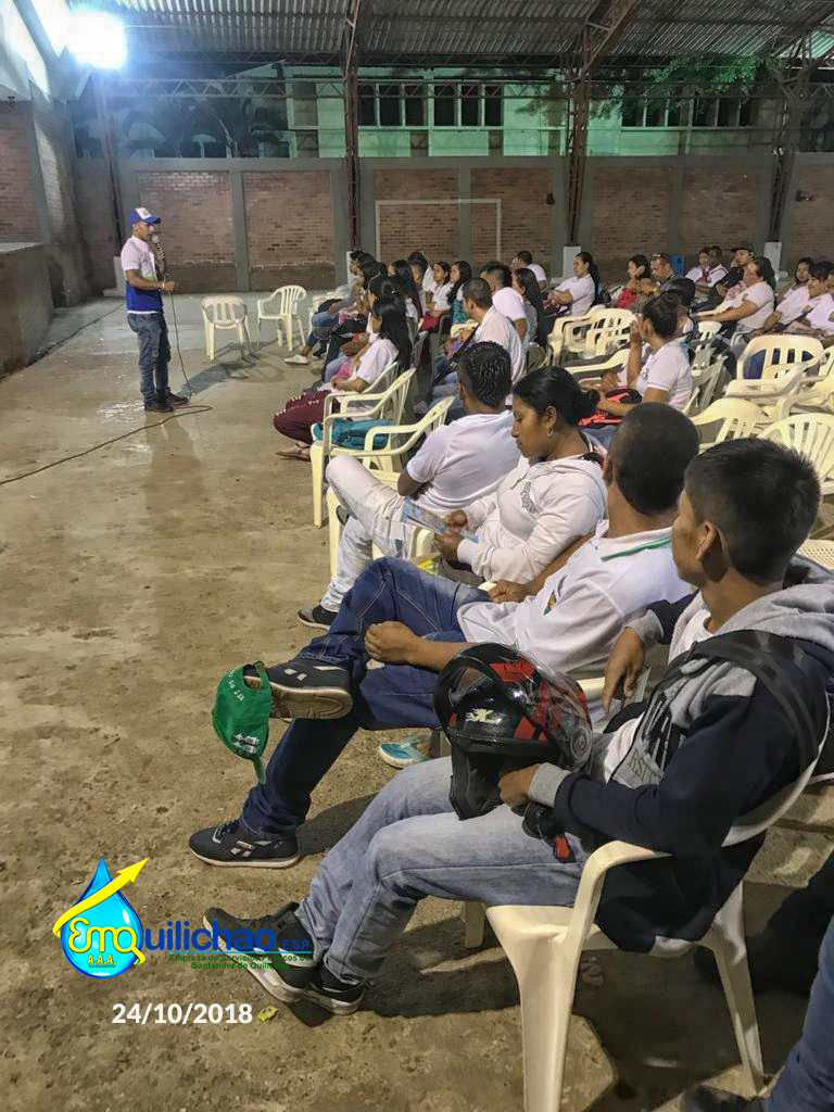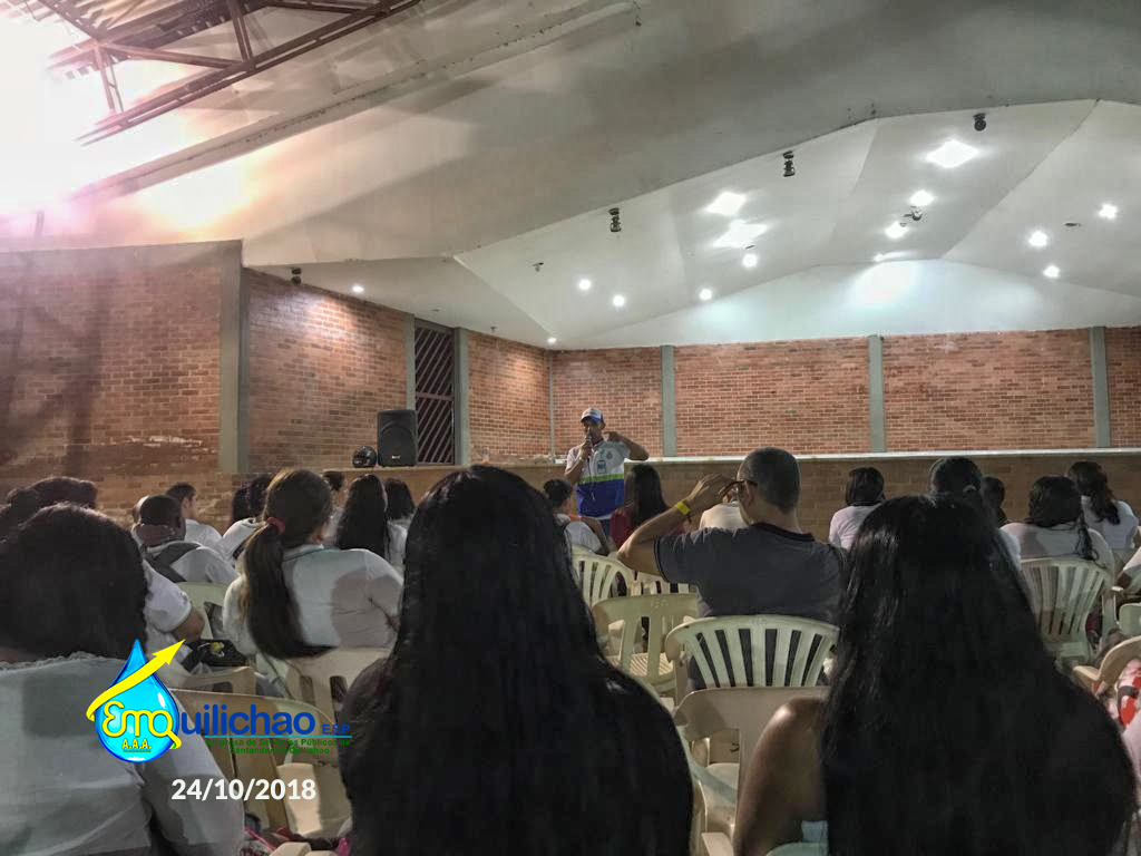 Con el objetivo de incentivar la conservación y protección del medio ambiente y los recursos naturales, el Programa de Uso Eficiente y Ahorro del Agua de Emquilichao, capacito 1552 estudiantes de las diferentes jornadas sobre temas que tienen que ver tanto con la Importancia que reviste para nuestras vidas la protección de nuestro Ambiente, la preservación y el Uso Sostenible de nuestros Recursos Naturales; como también, los Problemas Ambientales que se están presentando en el Planeta, identificando sus causa/consecuencias y la manera en que podemos coadyuvar para la solución de los mismos.