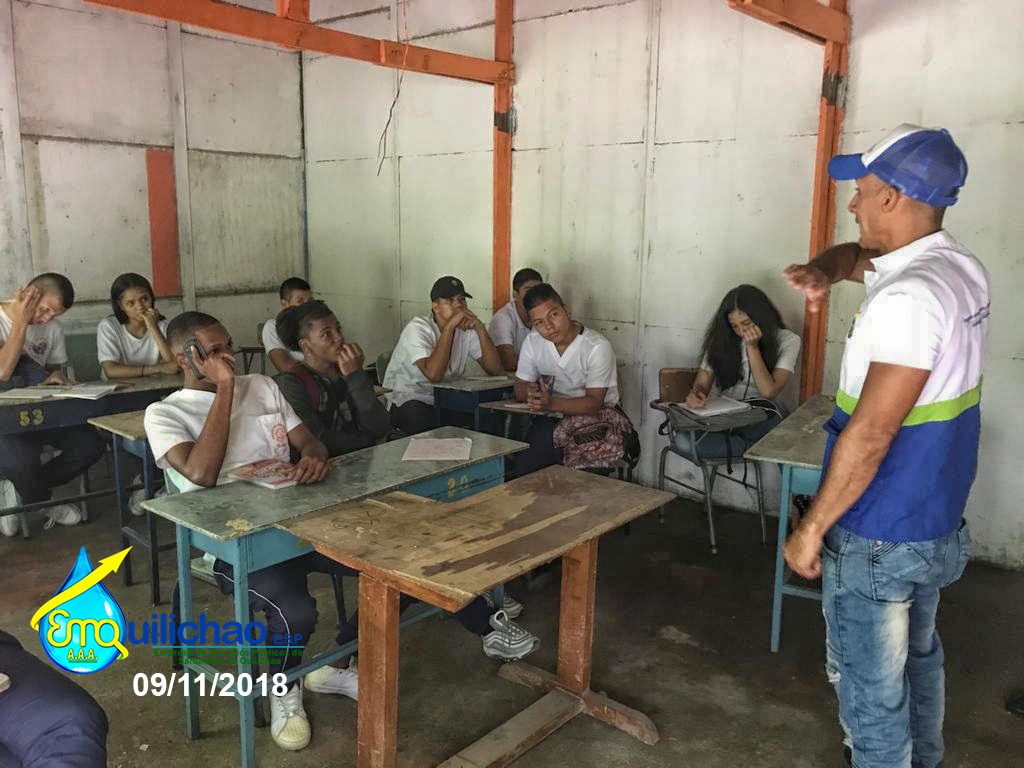 El programa de Uso Eficiente y Ahorro del Agua de la empresa Emquilichao, compartió con los estudiantes del colegio Gimnasio Moderno algunos tips que nos ayudaran con el cuidado del agua y de los recursos naturales; mas de 54 personas entre estudiantes y maestros se comprometieron a cuidar este importante recurso.