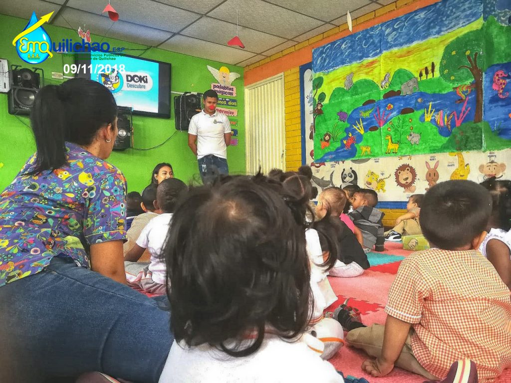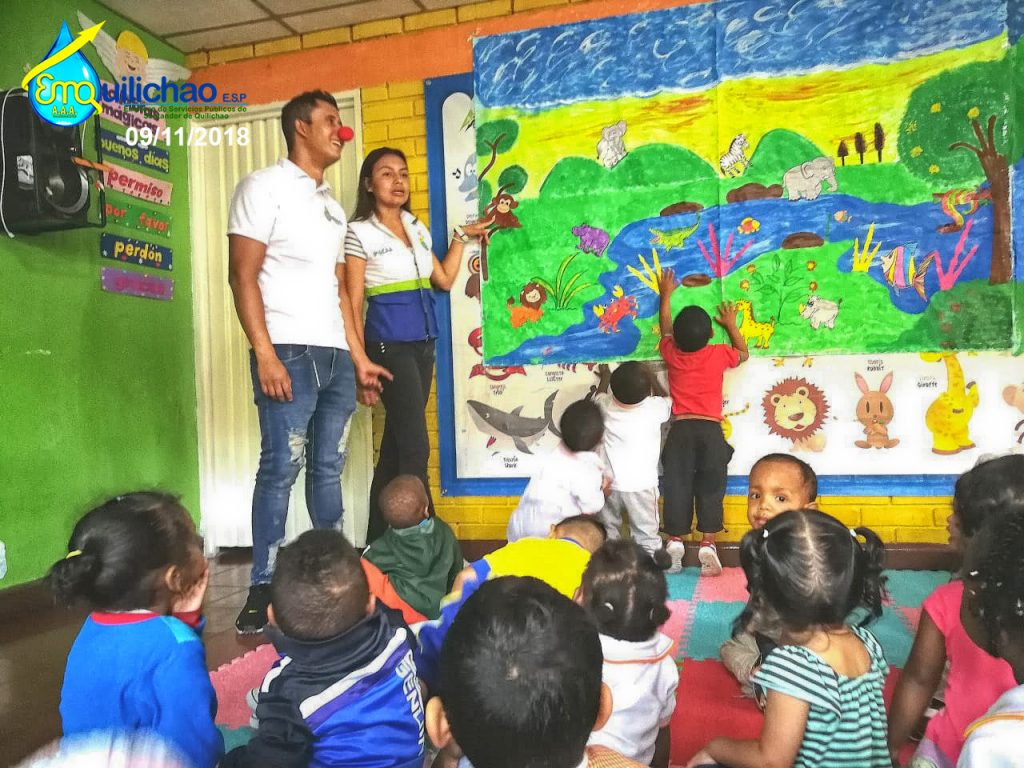 Mas de 52 personas entre estudiantes y maestros recibieron una animada capacitación con el grupo Pueaa de Emquilichao, temas como conservación del agua y de los recursos naturales encabezaron las lista en esta hermosa jornada donde los mas pequeños ratificaron desde ya, ser vigias y conservadores del Ambiente, porque con el ambiente no la jugamos toda.