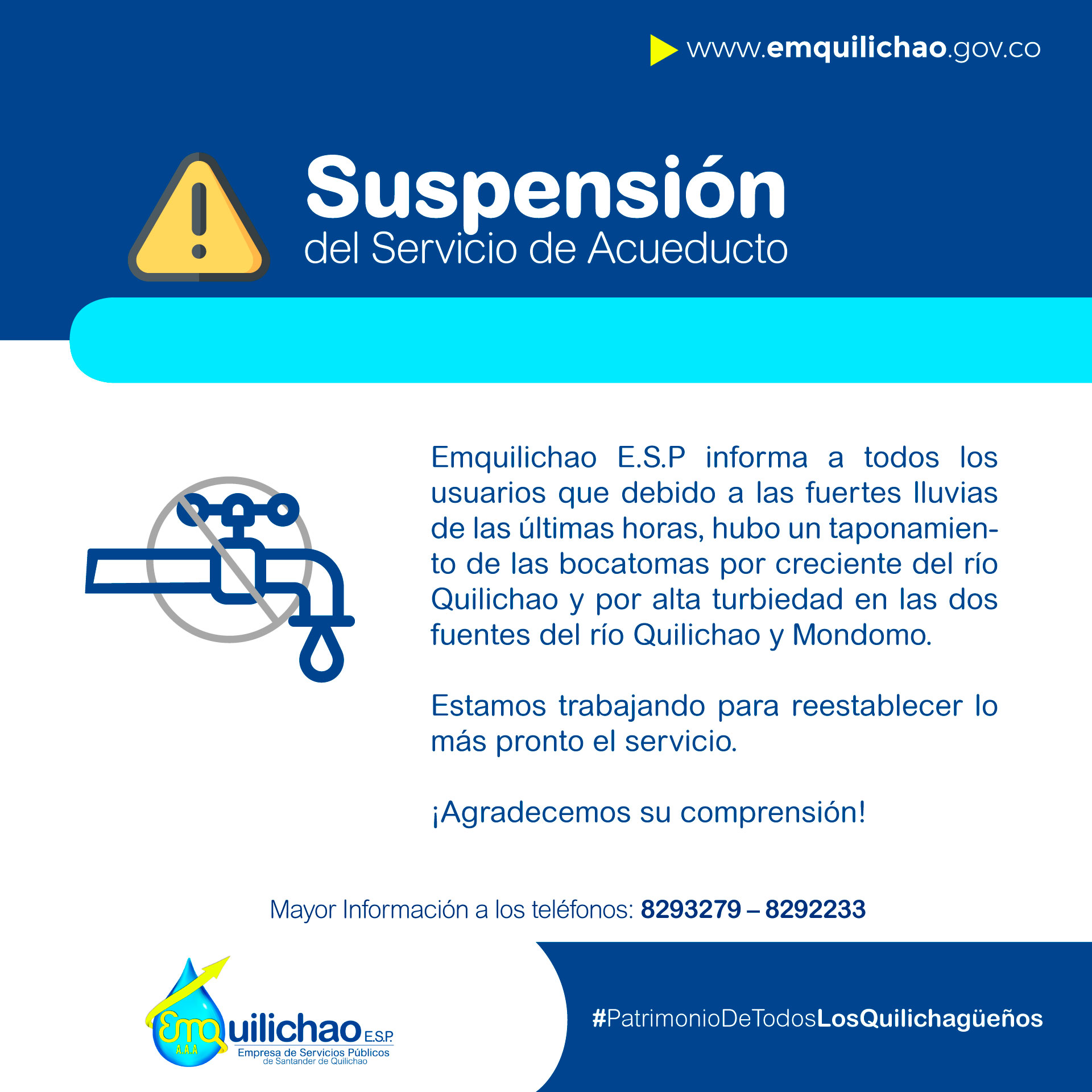 Emquilichao E.S.P informa a todos los usuarios que debido a las fuertes lluvias de las últimas horas, hubo un taponamiento de las bocatomas por creciente del río Quilichao y por alta turbiedad en las dos fuentes del río Quilichao y Mondomo. Estamos ... Leer más