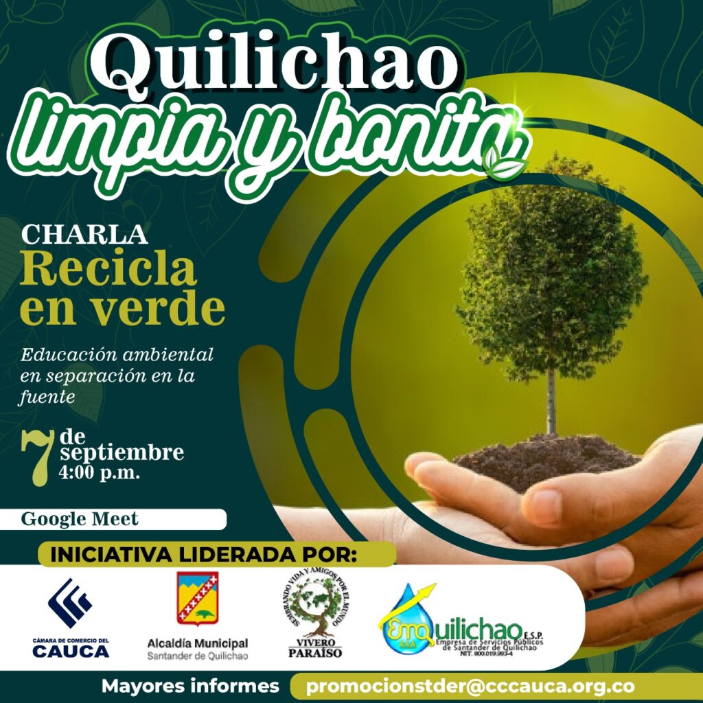En el marco de la campaña ‘Quilichao Limpia y Bonita’ te invitamos a la charla ‘Recicla en verde’, educación ambiental en separación en la fuente, ¡HOY! 7 de septiembre a partir de las 4:00 PM. Con la participación de Brasoc SAS – Popayán y Bodegas de Reciclaje del Sur Occidente Colombiano.