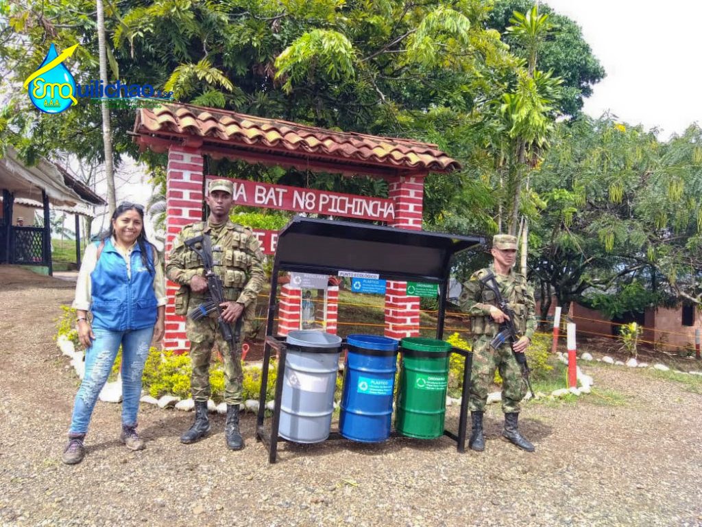 Un punto ecológico es una zona especial claramente demarcada y señalizada, compuesta por recipientes de diferentes colores que reemplazan las comúnmente llamadas canecas de basura; estos puntos los encontramos en las zonas comunes de instituciones educativas, empresas, centros comerciales, centros recreativos y en diferentes establecimientos culturales. Tienen como objetivo incentivar, motivar y sensibilizar a las personas a actuar responsablemente en la separación en la fuente de todos los residuos sólidos que producen, la empresa de Servicios Públicos Emquilichao realizo la entrega de dos puntos Ecológicos, uno en la Institución Educativa Francisco José de Caldas y otro el comando del ejército.