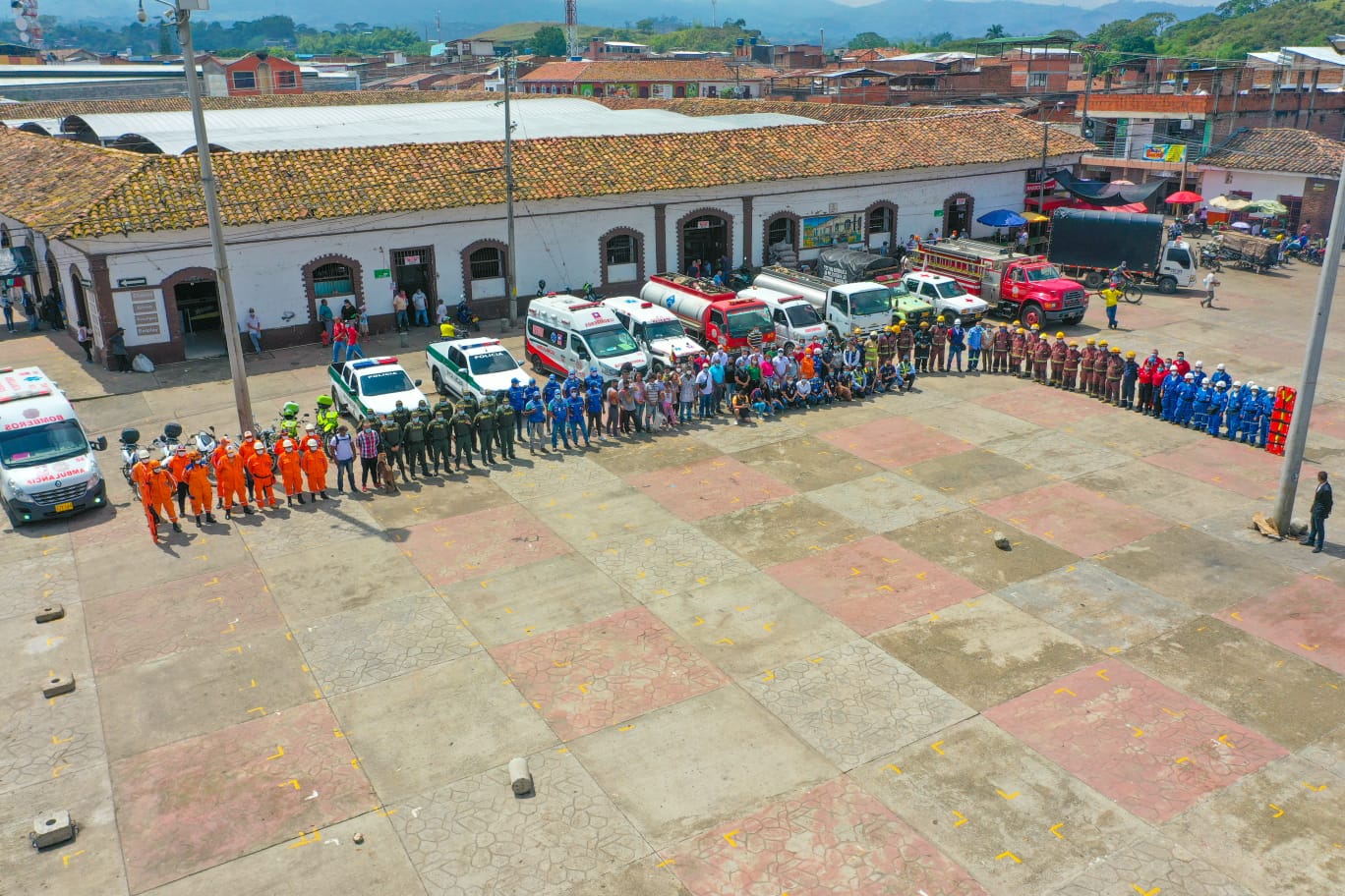 Este año el Simulacro Nacional se vivió desde la Plazoleta de Mercado, más de 100 personas entre organismos de socorro y funcionarios públicos, se unieron para atender el Simulacro Nacional, un ejercicio de corresponsabilidad entre distintos actores donde los organismos de socorro, la Administración Municipal, el Hospital y las empresas demuestran la capacidad de coordinación y respuesta para atender y responder de manera efectiva y oportuna a eventos que podrían poner en peligro la vida de los ciudadanos.