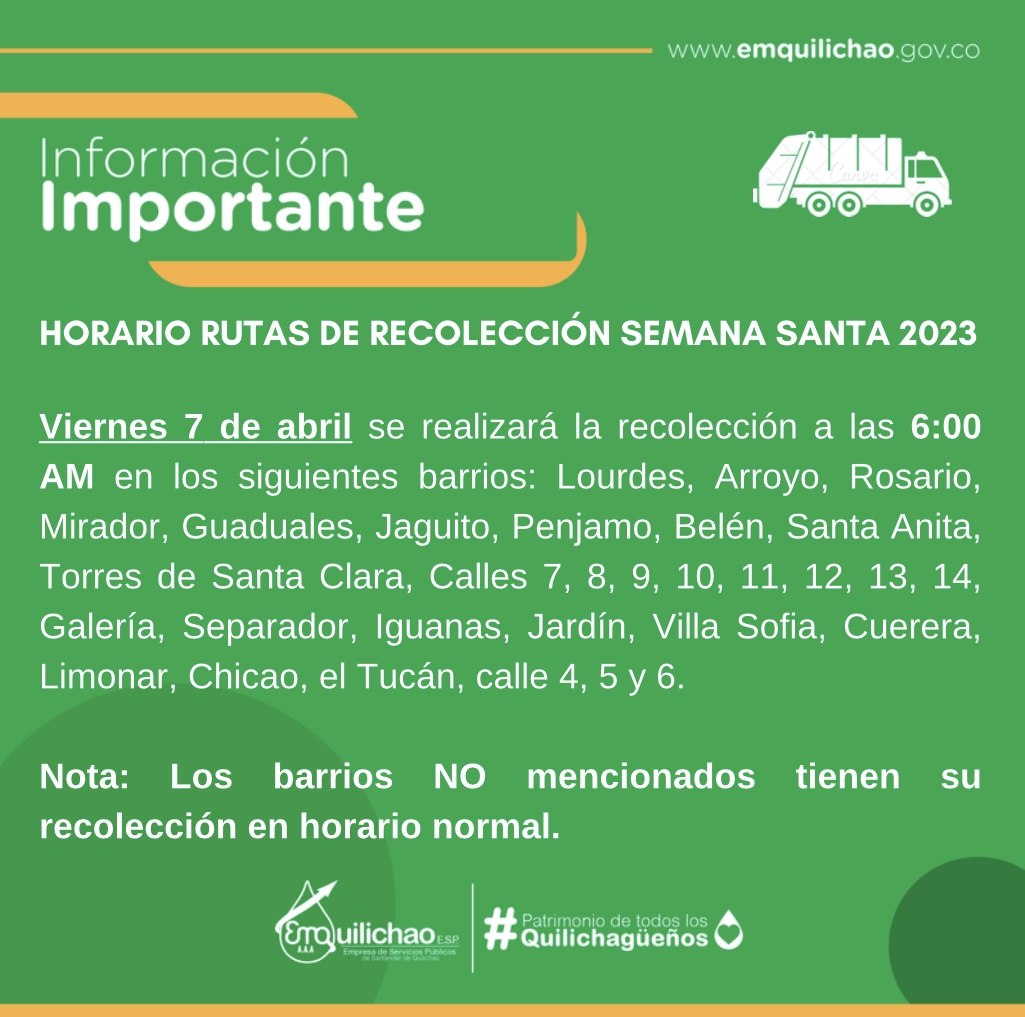 Horarios de las rutas de recolección Semana Santa 2023