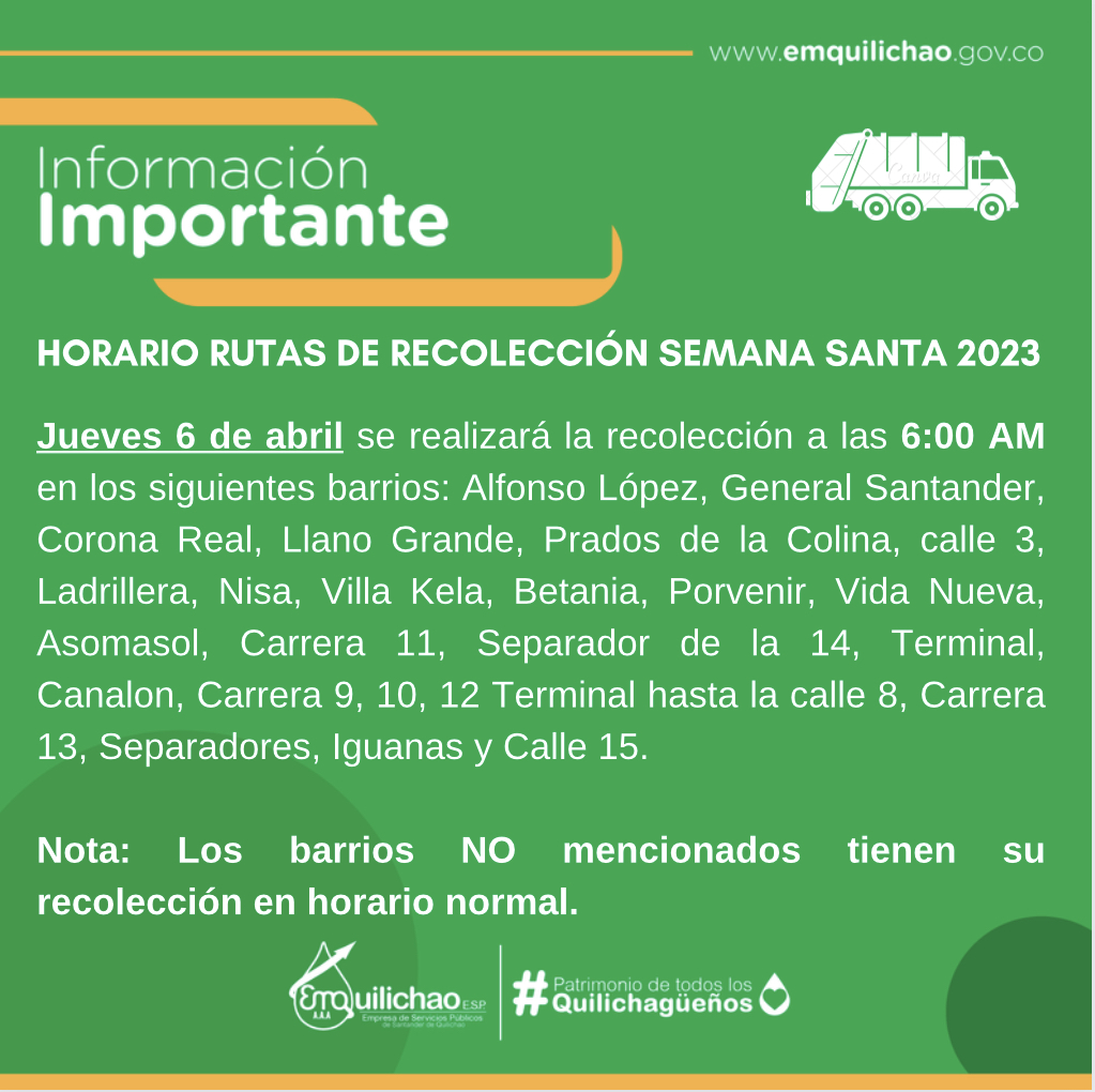 Horarios de las rutas de recolección Semana Santa 2023