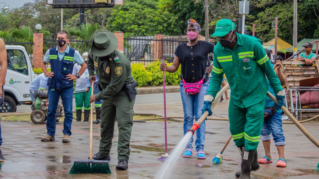 El día de hoy, se continuaron con actividades ambientales en el marco de la campaña ‘Quilichao Limpia y Bonita’, se realizó una jornada de lavado y desinfección del parque del Centro Comercial La Estación y el puente peatonal, en articulación con Bomberos Voluntarios, Cámara de Comercio del Cauca, Policía Ambiental y comerciantes del sector. #Emquilichao #PatrimonioDeTodosLosQuilichagüeños
