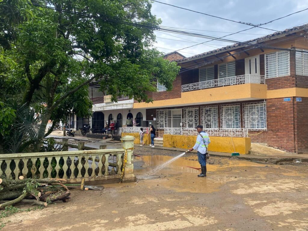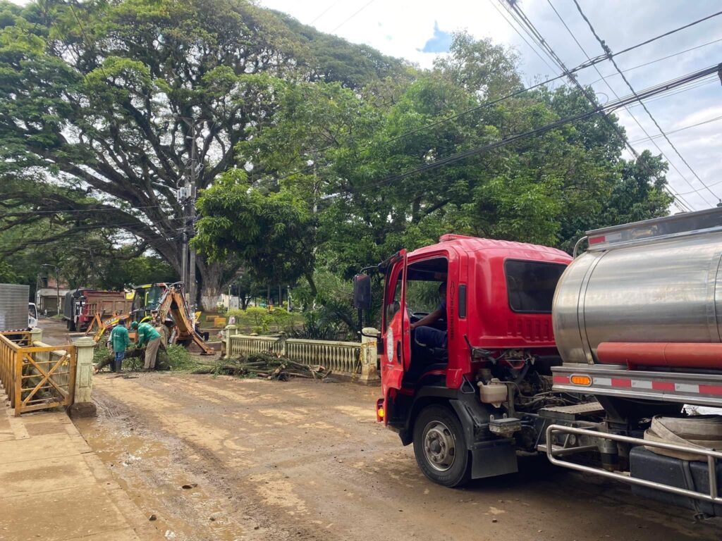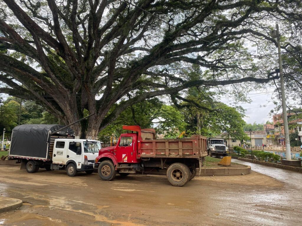 El personal del Emquilichao ESP en compañía de la Alcaldía Municipal con maquinaria amarilla y con apoyo del Cuerpo de Bomberos Voluntarios de nuestro municipio, realizaron el lavado de las vías cercanas al Parque Simón Bolívar.