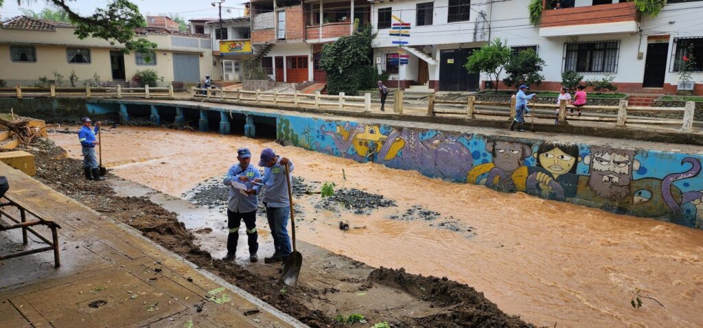 En las imágenes se muestra el estado actual de la piscina publica donde ya fue retirado el material de rio, lodo, piedras y escombros, la limpieza del Parque Bolívar y el trabajo de descolmatación que se está adelantando con retroexcavadora en el lecho de rio.