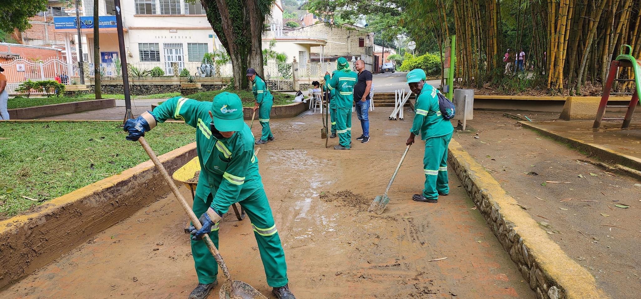 En las imágenes se muestra el estado actual de la piscina publica donde ya fue retirado el material de rio, lodo, piedras y escombros, la limpieza del Parque Bolívar y el trabajo de descolmatación que se está adelantando con retroexcavadora en el lecho de rio.