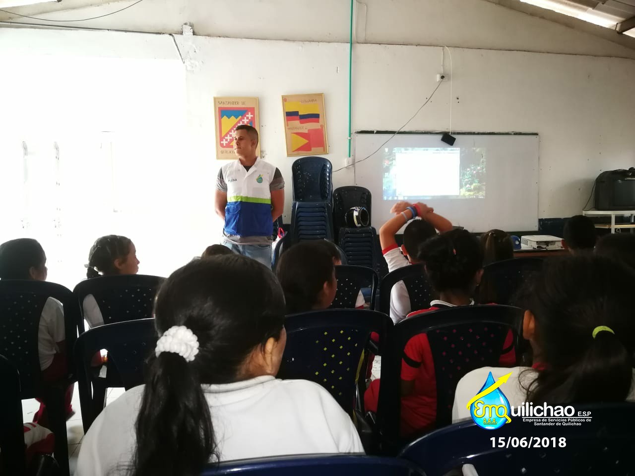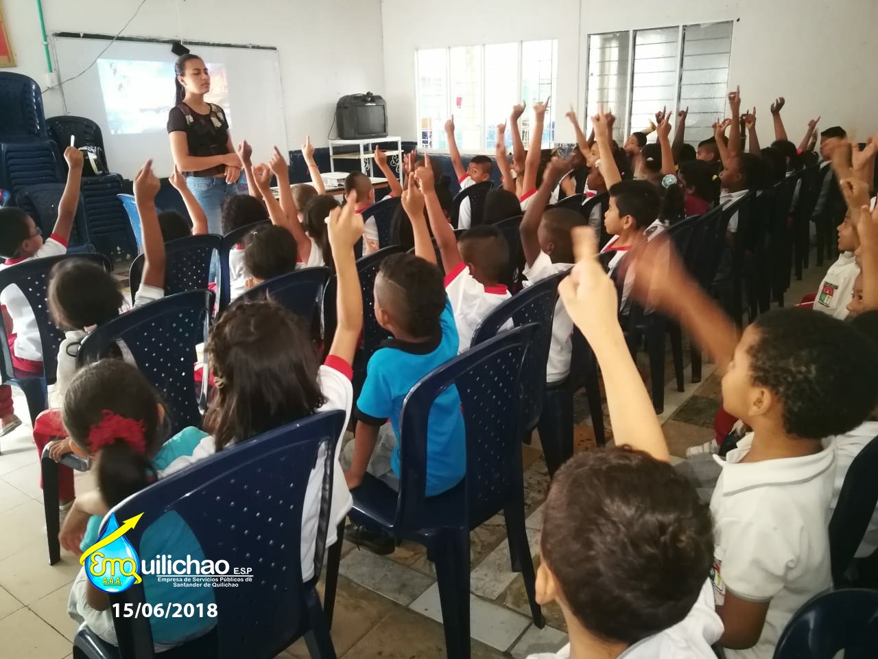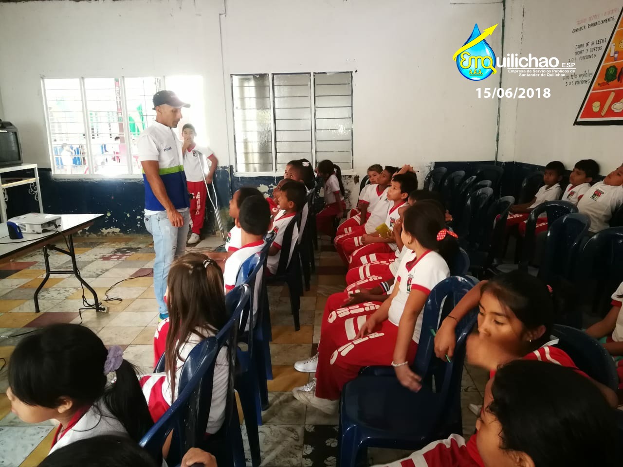 Desde hace mas de siete años el Programa de Uso Eficiente y Ahorro del Agua de la empresa de servicios públicos Emquilichao E.S.P, trabaja cada día con las instituciones educativas del municipio realizando campañas para sensibilizarnos acerca del uso eficiente y ahorro del agua; La institución Educativa Policarpa Salavarrieta comprometida con el ambiente recibió esta importante capacitación donde mas de 238 personas entre estudiantes y docentes se comprometieron a cuidar el agua y los recursos naturales