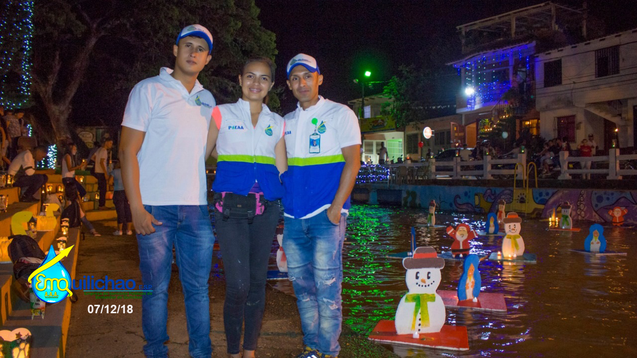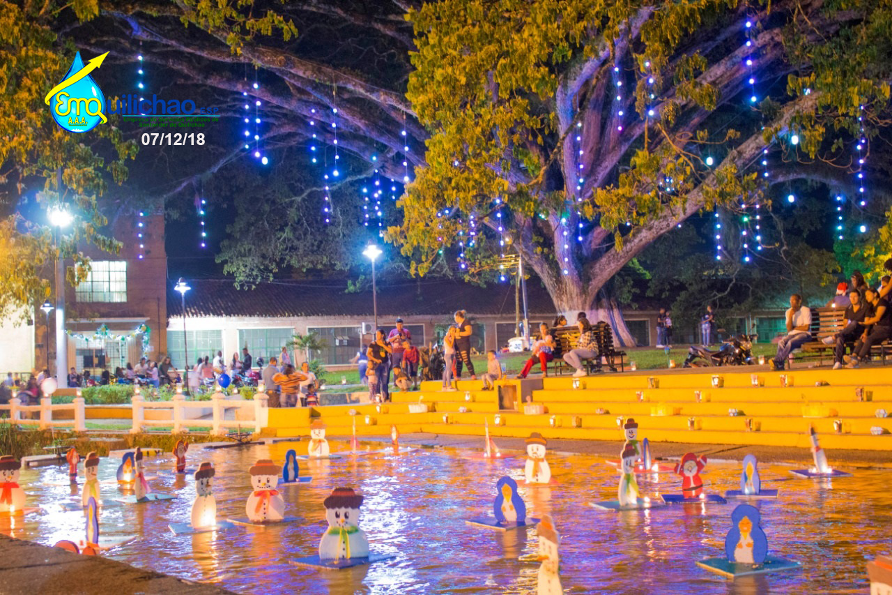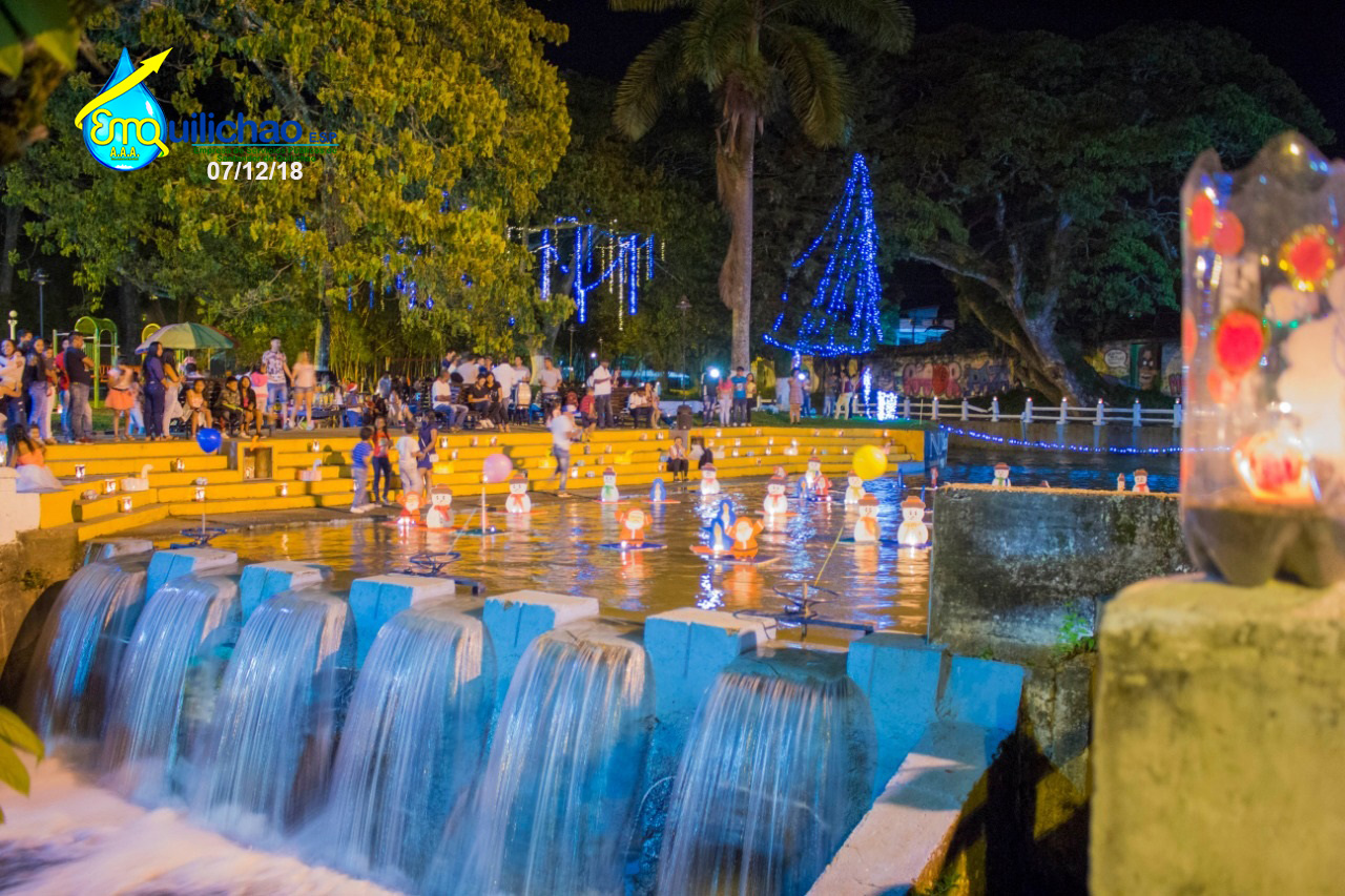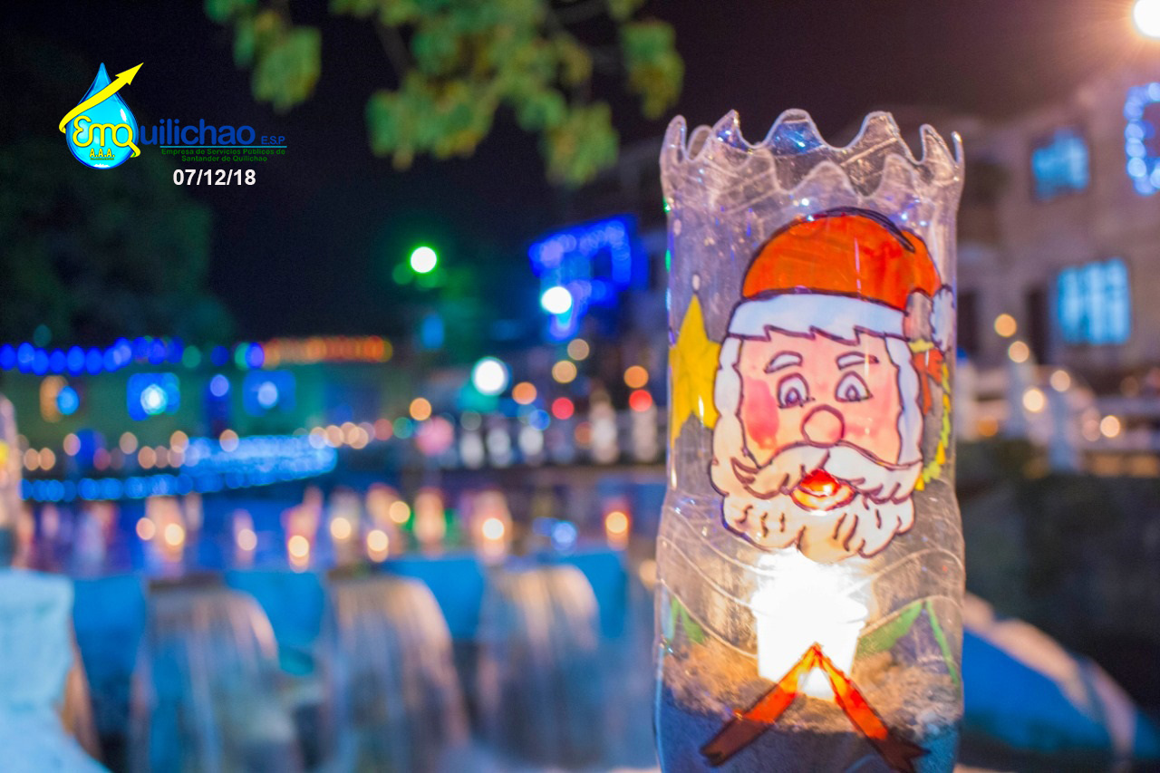 Durante este viernes cientos de Quilichagueños se reunieron entorno a velas y faroles para conmemorar la tradicional Noche de Velitas, organizada por el programa de Uso Eficiente y Ahorro del Agua de Emquilichao E.S.P, con el apoyo de los estudiantes de obras sociales de las Instituciones Educativas Fernández Guerra, Limbania Velazco, todos unidos engalanaron el parque Simón Bolívar y alrededor de la piscina municipal con faroles y figuras navideñas hechas en materiales reciclados recuperados durante todo el año por los estudiantes de obras sociales, una tarea ardua donde también la empresa Icolinas del señor Néstor Rodríguez apoyo en todo momento, la policía nacional de turismo que siempre estuvo presente en las adecuaciones y limpiezas del parque y los estudiantes de obras sociales de Emquilichao a las que les debemos esta hermosa noche de velitas un regalo de ellos para todo el pueblo Quilichagueño, gracias a Fernando López, por las fotografías de la noche de velitas, postales maravillosas de este momento mágico, por Ultimo gracias a Frank Nander Falla , coordinador de esta actividad, ambientalista persona dedicada 100 %al cuidado del ambiente.