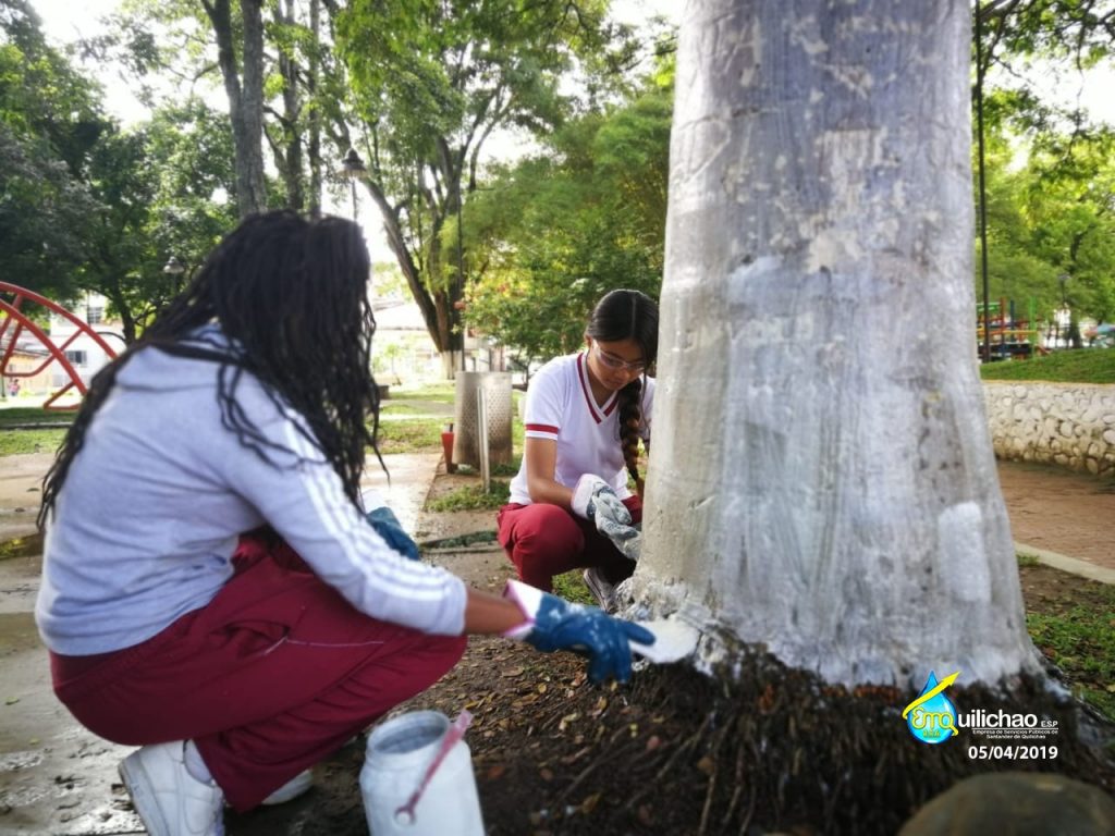 En Santander de Quilichao cada vez somos más los que cuidamos nuestros parques y ríos, cada día nace ese compromiso de velar por el bienestar del ambiente y el cuidado del agua, el Programa de Uso Eficiente Y ahorro del Agua de la empresa de Servicios Públicos Emquilichao E.S.P con los estudiantes de obras sociales realizaron la limpieza y pintada de arboles en el parque Simón Bolivar embelleciendo cada vez mas este hermoso lugar.