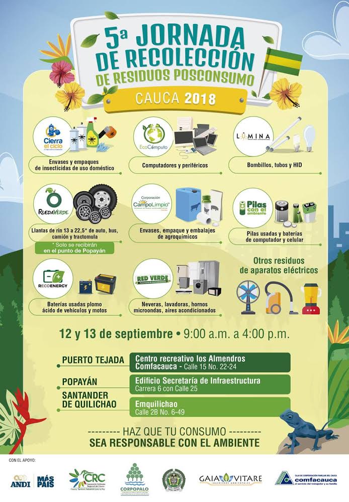 Esta V Jornada de Recolección de Residuos Posconsumo es liderada por la Andi y tiene el apoyo de más de 10 entidades públicas y privadas como Emquilichao E.S.P, Comfacauca, MASPAIS, empresas de servicios, alcaldías e instituciones educativas.