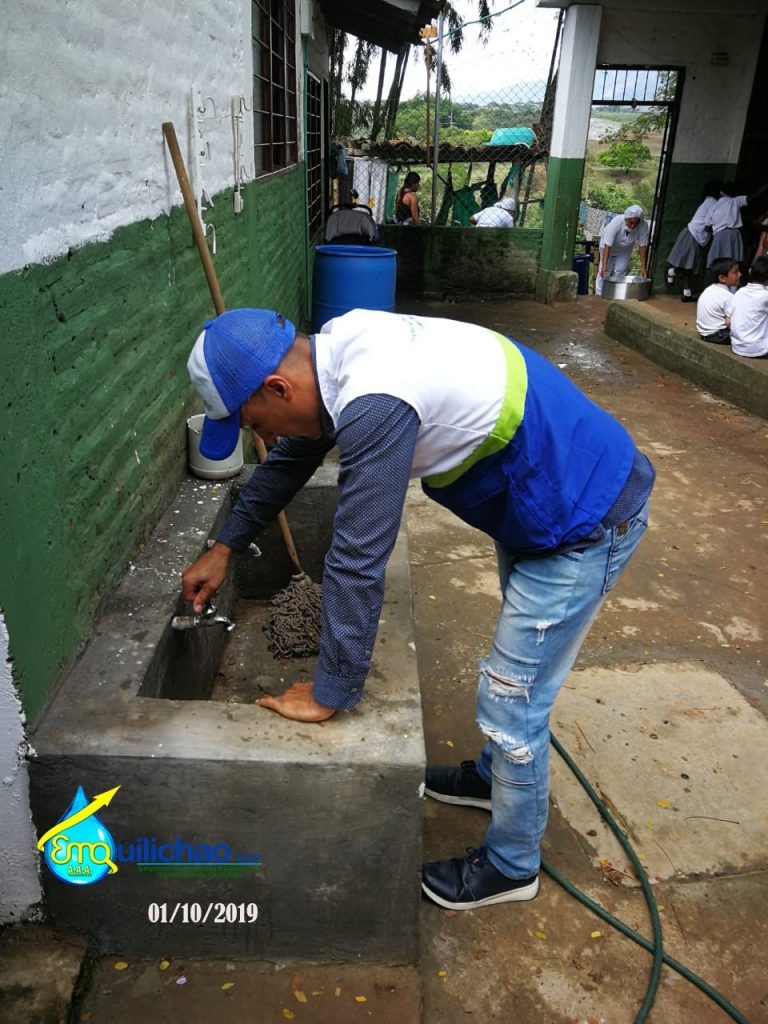 Con el fin de revisar e informar sobre los daños en baterías sanitarias, llaves y grifos en las instituciones educativas del municipio, El programa de Uso Eficiente y Ahorro del Agua de la empresa de servicios públicos Emquilichao E.S.P, realiza seguimiento y control trimestral a las 22 instituciones educativas de la zona urbana, con estos seguimientos se informa a los planteles educativos sobre el estado de sus baterías sanitarias, llaves y grifos con el fin de reportar y corregir posibles daños.