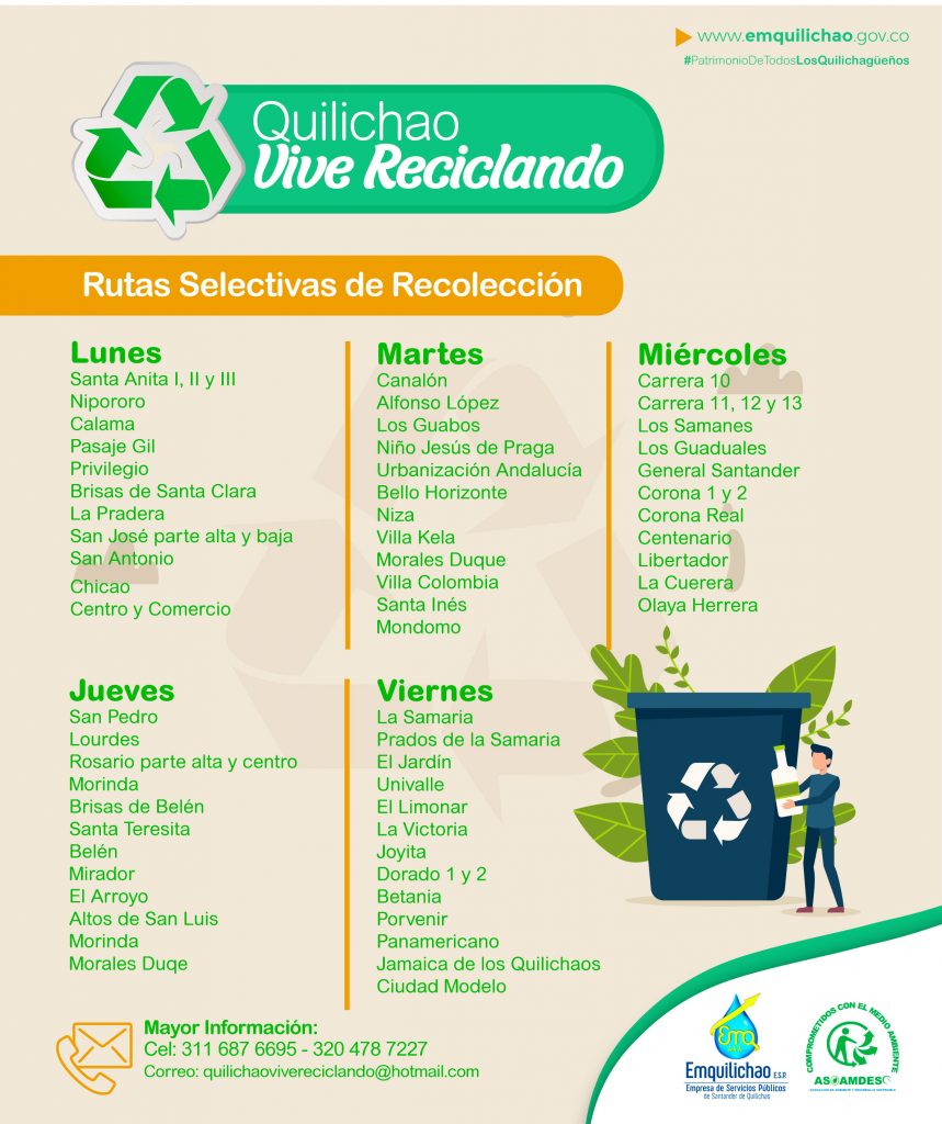 #Reciclaje | ♻️♻️ Te informamos las rutas selectivas de recolección de residuos aprovechables, recuerda separar correctamente tus residuos y entregarlos a nuestros recuperadores de Asoamdeso.