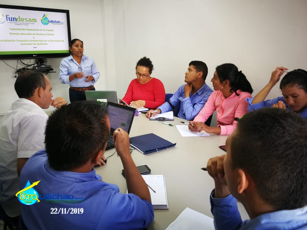 El programa de Uso Eficiente y Ahorro del Agua de la empresa de servicios públicos Emquilichao E.S.P, junto con FUNDESAM se encuentran comprometidos con el ambiente, la separación de los residuos y ahorro del agua en el municipio, es por eso que estuvimos compartiendo con los empleados de la empresa Gestiones y Soluciones que presta sus servicios a la CEO, sensibilizando y charlando un poco sobre como ahorrar agua en sus puestos de trabajo y hogares, compartiendo un poco sobre cuáles son los residuos que se pueden reciclar y que disposición y tratamiento tienen, fortalecer el reciclaje como mecanismo de separación y reducción de residuos sólidos.