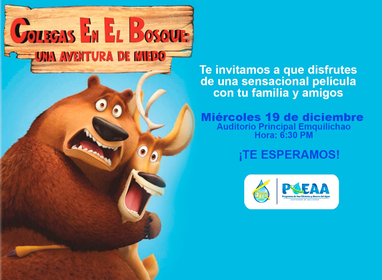 Emquilichao tiene el gusto de invitarte este miércoles 19 de diciembre a que disfrutes de una sensacional película, que promueve el cuidado del ambiente y los animales, acompáñanos en el auditorio principal Emquilichao E.S.P, hora 06:30 pm.